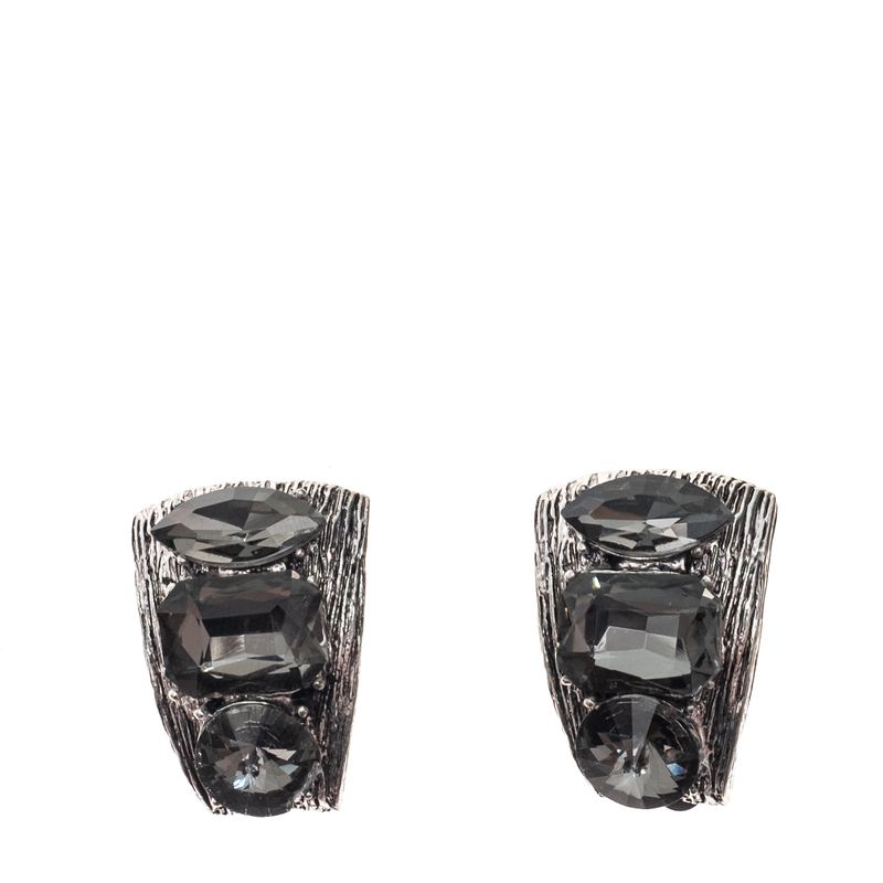 FemininoAcessórios de LuxoBijouxBrincosBrinco de Pressão Vintage Metal Prateado e Pedras Escuras