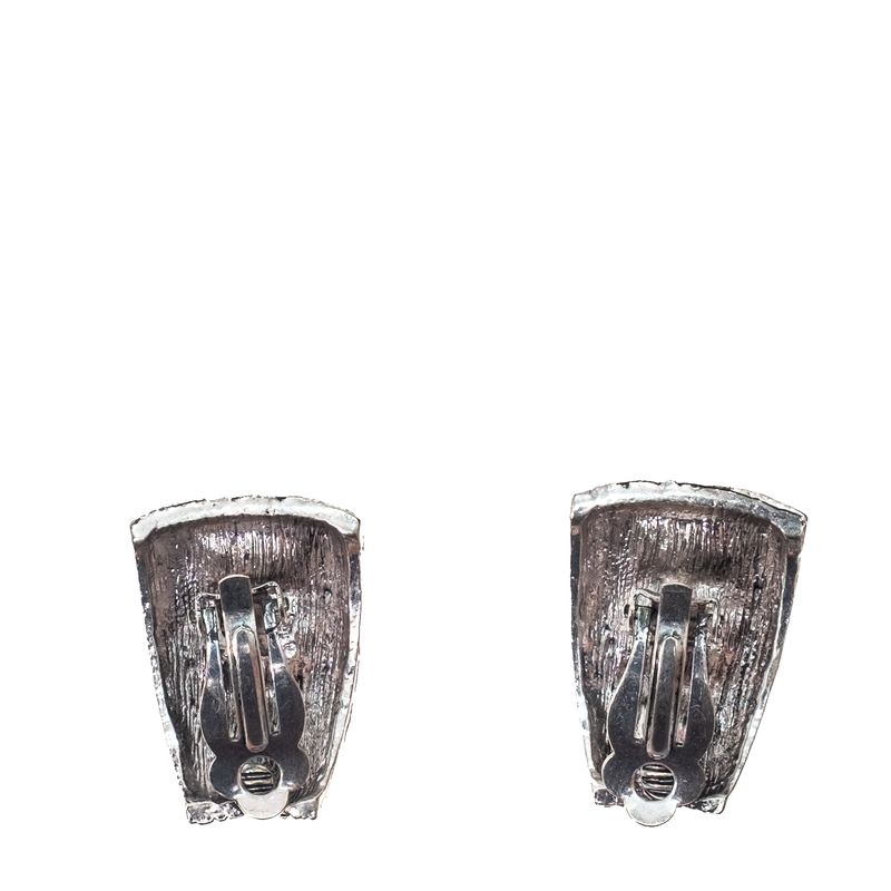 Brinco de Pressão Vintage Metal Prateado e Pedras Escuras