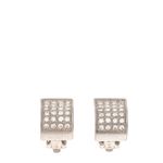 Brinco de Pressão Vintage, confeccionado em metal prateado com leve curva e strass. A peça se encontra em ótimo estado, com leves marcas de uso.