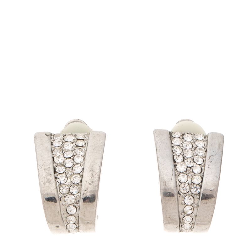 Brinco de Pressão Vintage, confeccionado em metal prateado com strass. A peça se encontra em bom estado, com marcas de uso.