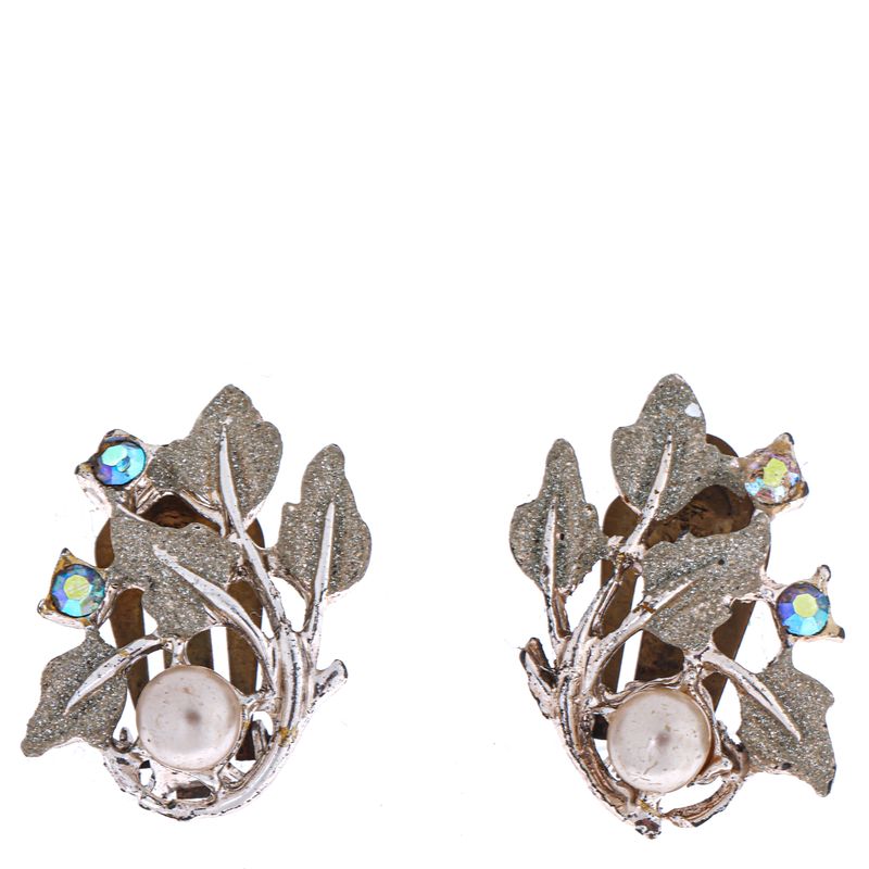 FemininoAcessórios de LuxoBijouxBrincosBrinco de Pressão Vintage Ramo de Folhas Prateado