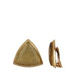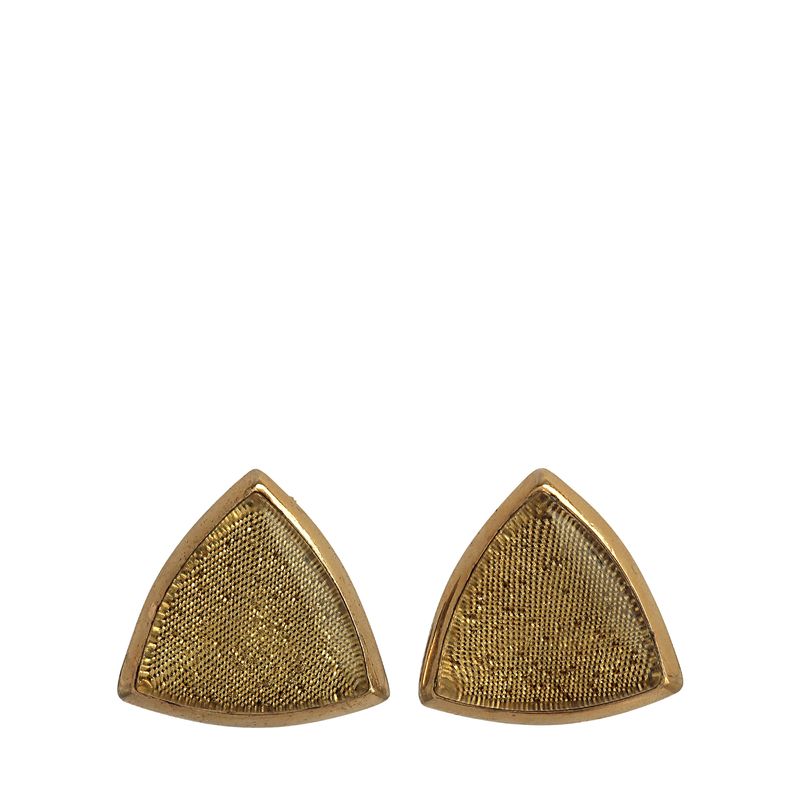Brinco de pressão em formato de triângulo, confeccionado em metal dourado e resina transparente tornando o fundo dourado evidente. A peça se encontra em excelente estado, muito bem conservada. Largura: 2,9 cm e Altura: 2,9 cm.