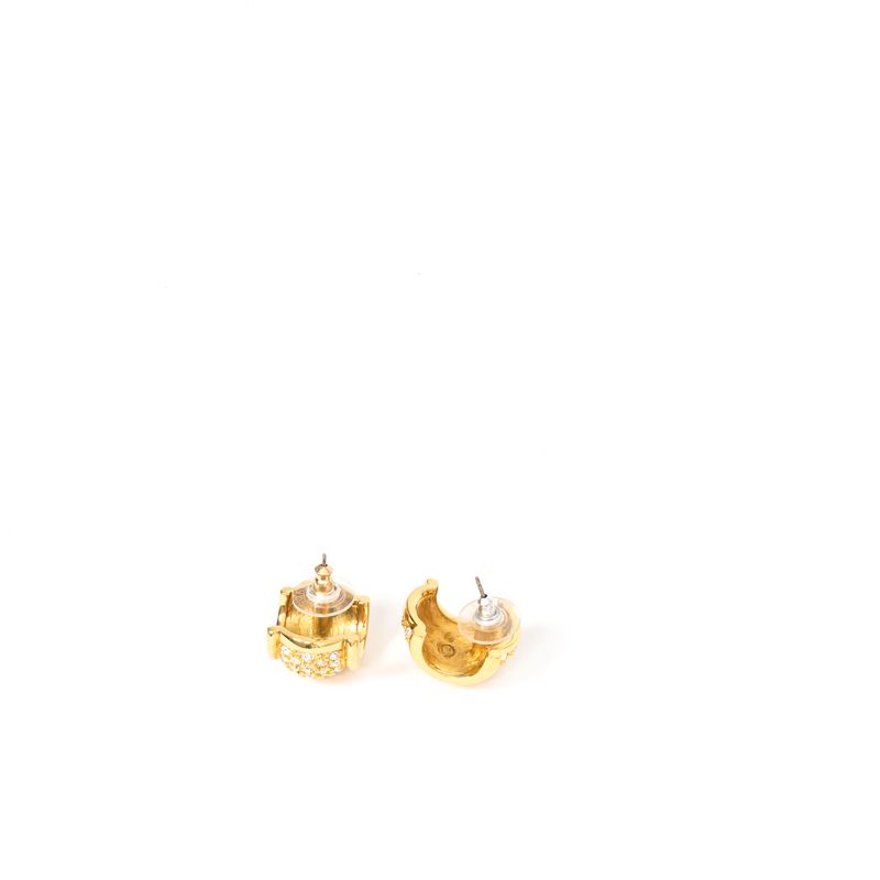 Brincos meia argola da marca Swarovski, tamanho 2 cm C, confeccionado em metal dourado cravejado com vários cristais. Encontra-se em bom estado de conservação.