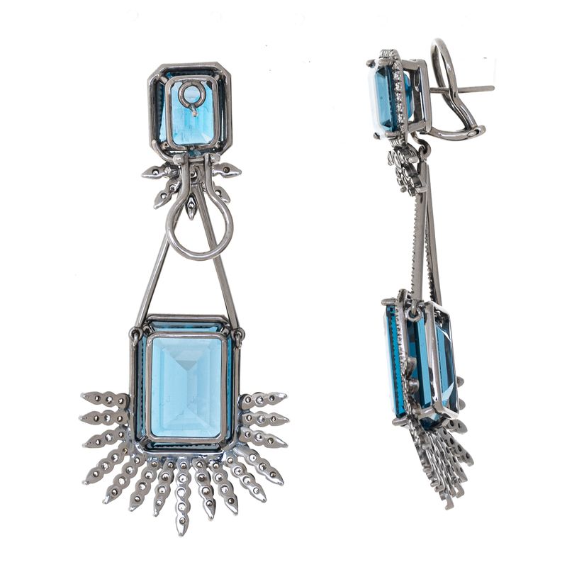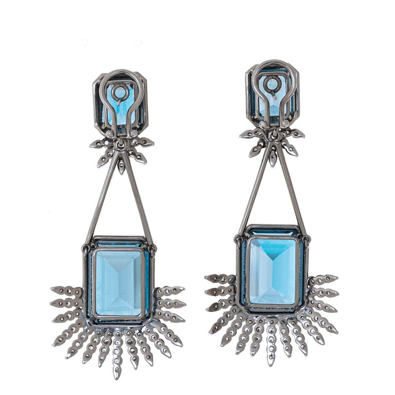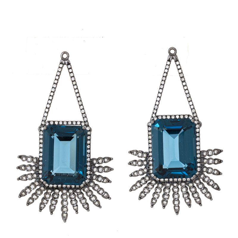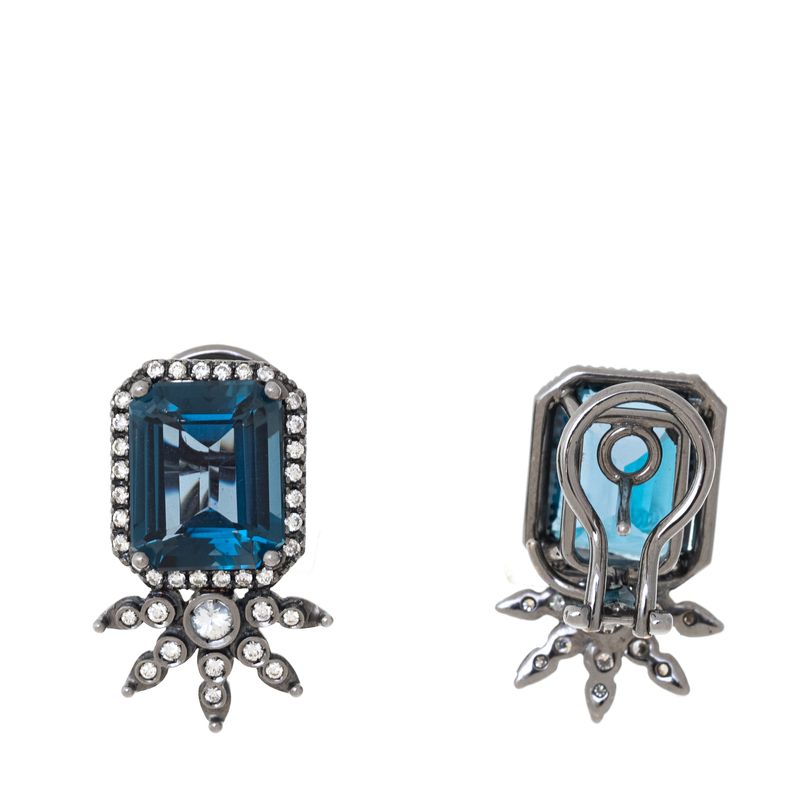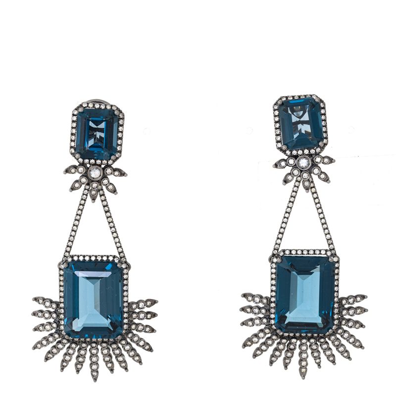 Brinco confeccionado pelo joalheiro Nathan Gilbert. Confeccionado em ouro branco, 4 topázios London, 332 brilhantes brancos. A peça se encontra em excelente estado, muito bem conservada.