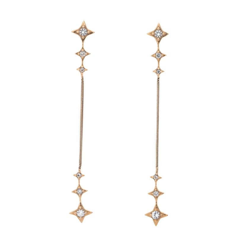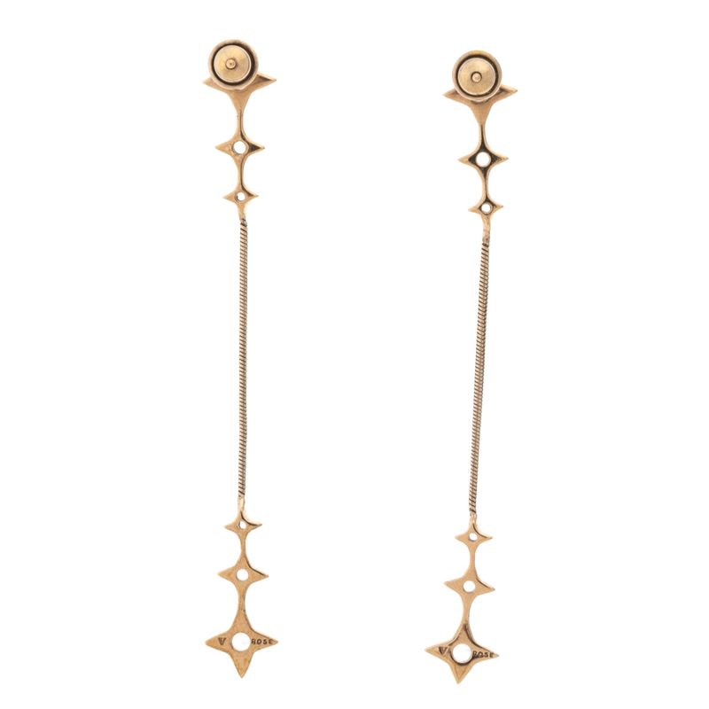 Brinco da marca Vivara Longo. Confeccionado em metal banhado em ouro rose com cristais. A peça se encontra em excelente estado, muito bem conservada.