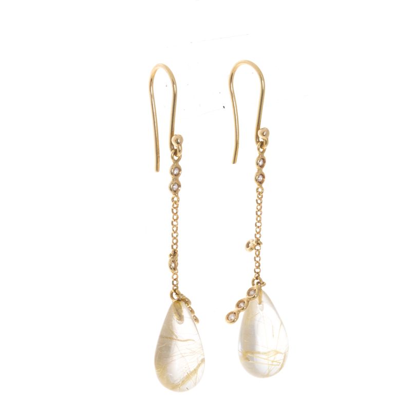 Brinco da marca Vivara, tamanho 5 cm comprimento. Confeccionado em ouro amarelo 18k com pedras brasileiras e brilhantes. A peça se encontra em excelente estado, muito bem conservada. Acompanha certificado.