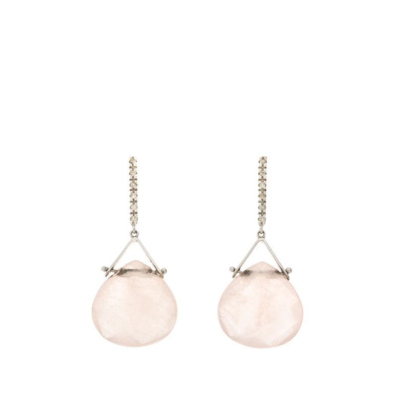 Brinco Vivara Ouro Branco e Quartzo Rosa