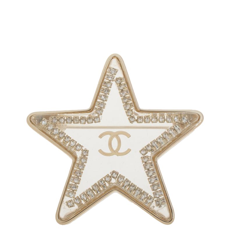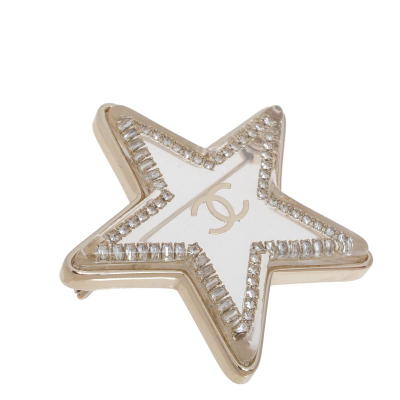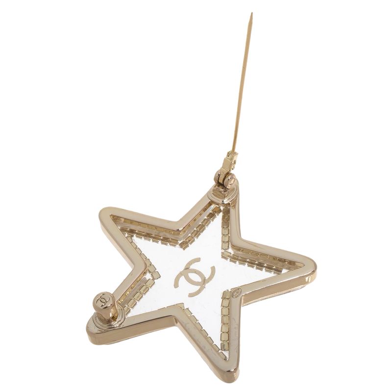 FemininoAcessórios de LuxoBijouxBrincosBroche Chanel Estrela Transparente e Dourado