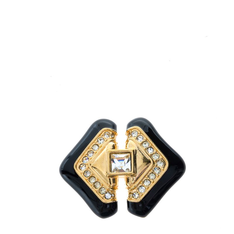 Broche Swarovski Dois Triângulos Dourado Esmalte Preto e Cristais