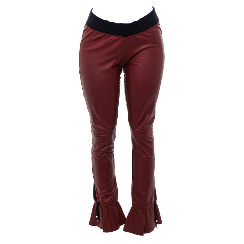 Calça Andrea Bogosian Couro e Tecido Bicolor