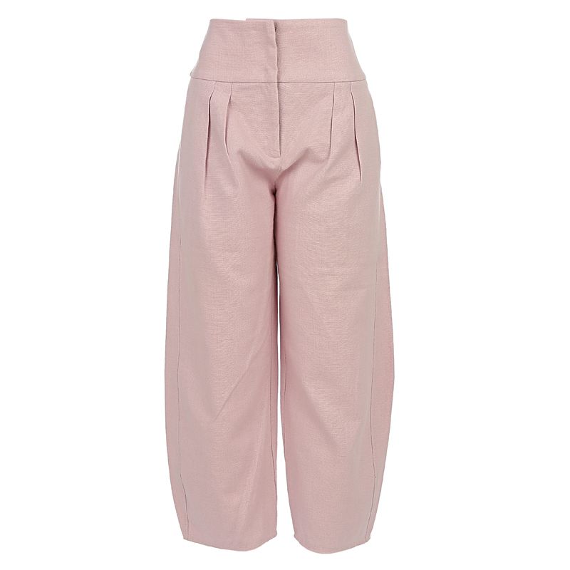 FemininoRoupasCalçasCalça Cris Barros Linho e Algodão Rosa