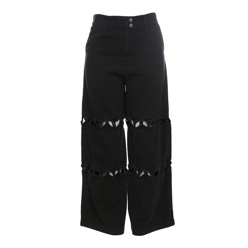 FemininoRoupasCalçasCalça Detalhes Vazados Preta