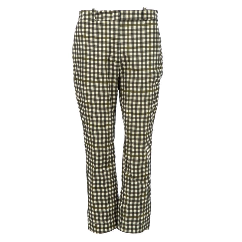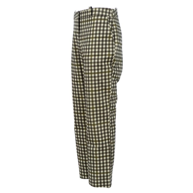 Calça da marca Egrey. Confeccionada em sarja xadrez nas cores verde, cinza e branco, com dois bolsos na parte da frente e fecho por meio de botão, encaixe e zíper. A peça se encontra em ótimo estado, com levíssimas marcas de uso.