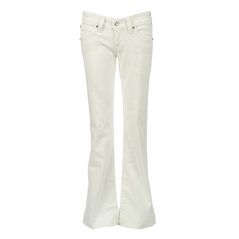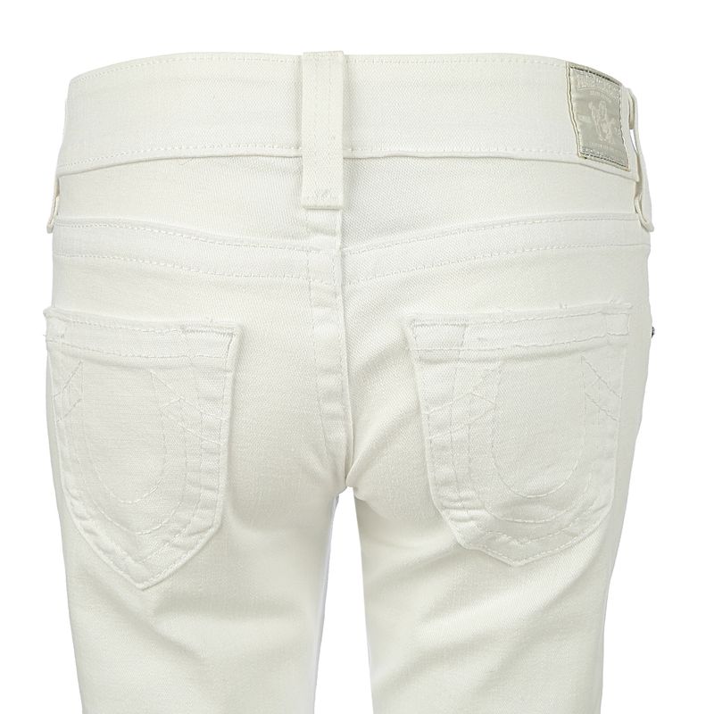 Calça da marca True Religion. Confeccionada em jeans branco a peça conta com modelagem flare, dois bolsos na parte da frente e dois bolsos na parte de trás e botão e aplicações em strass. A peça se encontra em excelente estado, muito bem conservada.