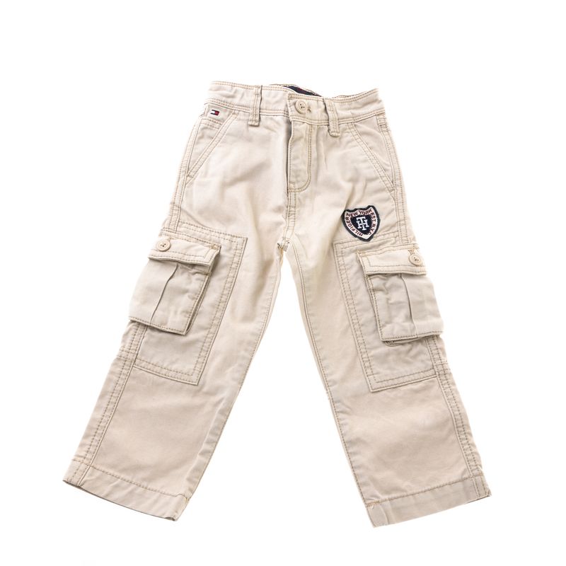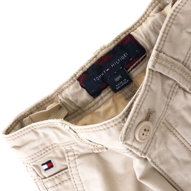 Calça infantil da marca Tommy Hilfiger. Confeccionada em jeans na cor bege. Possui elástico ajustável e dois bolsos na parte posterior, dois bolsos frontais, dois bolsos laterais, com fechamento por zíper e botão. A peça se encontra em excelente estado, muito bem conservada. Tamanho: 18 meses.
