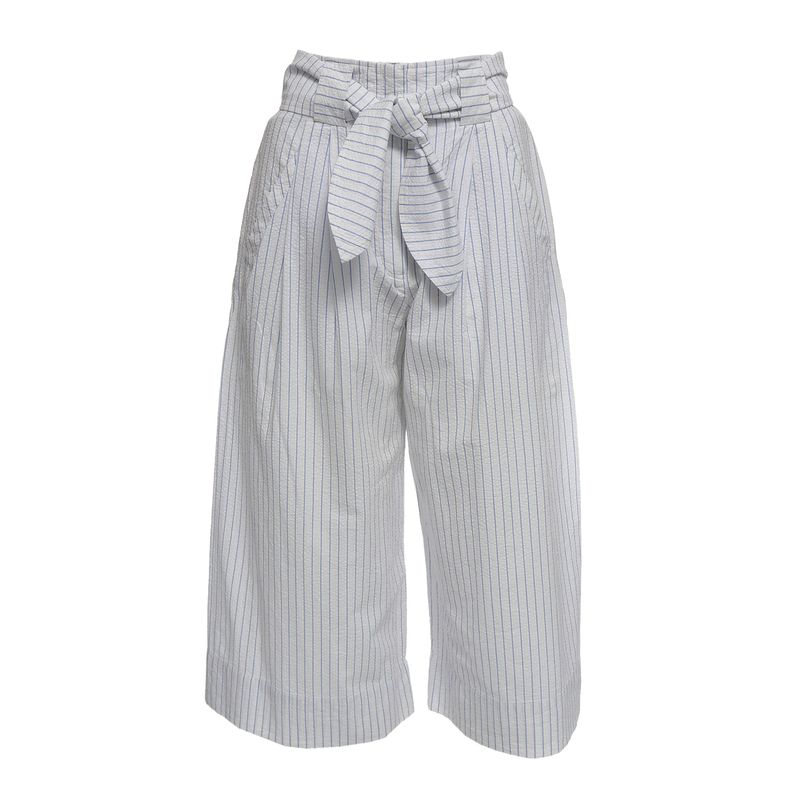 FemininoRoupasCalçasCalça NK Listras Branco e Azul com Cinto