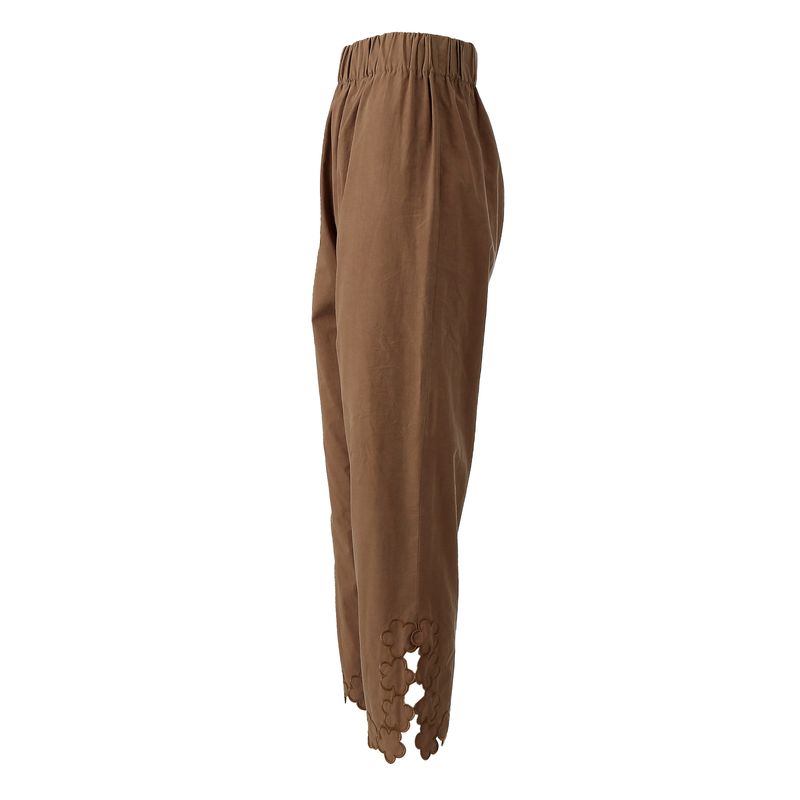 FemininoRoupasCalçasCalça Paula Raia Marrom e Bordado Flores
