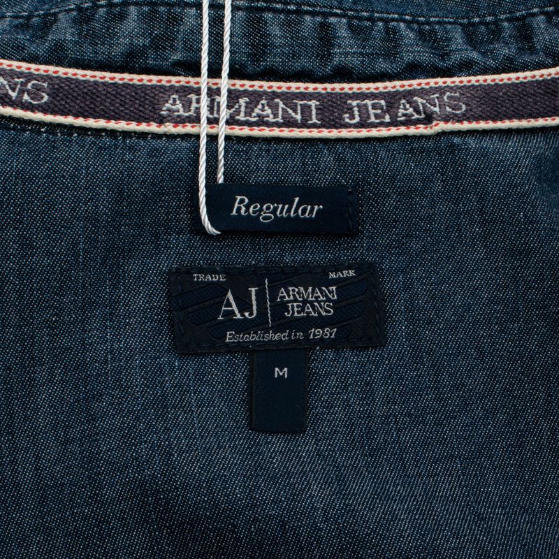 Camisa da marca Armani Jeans. Confeccionada em jeans 100% algodão com lavagem mais escura. Modelo com bolsos frontais e fechos por botões de pressão. A peça se encontra em excelente estado, muito bem conservada.