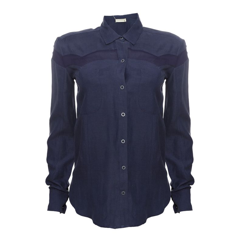FemininoRoupasCamisasCamisa Cris Barros Detalhe Transparencia Azul