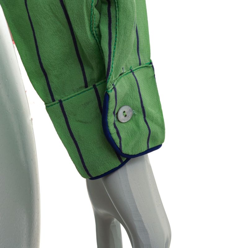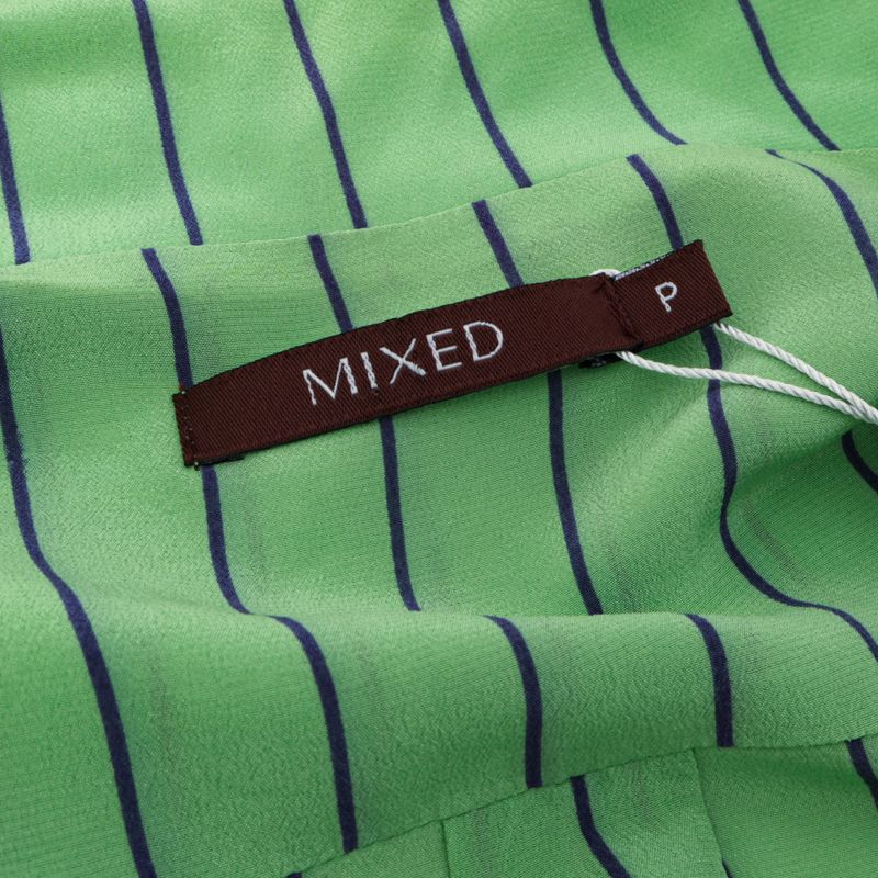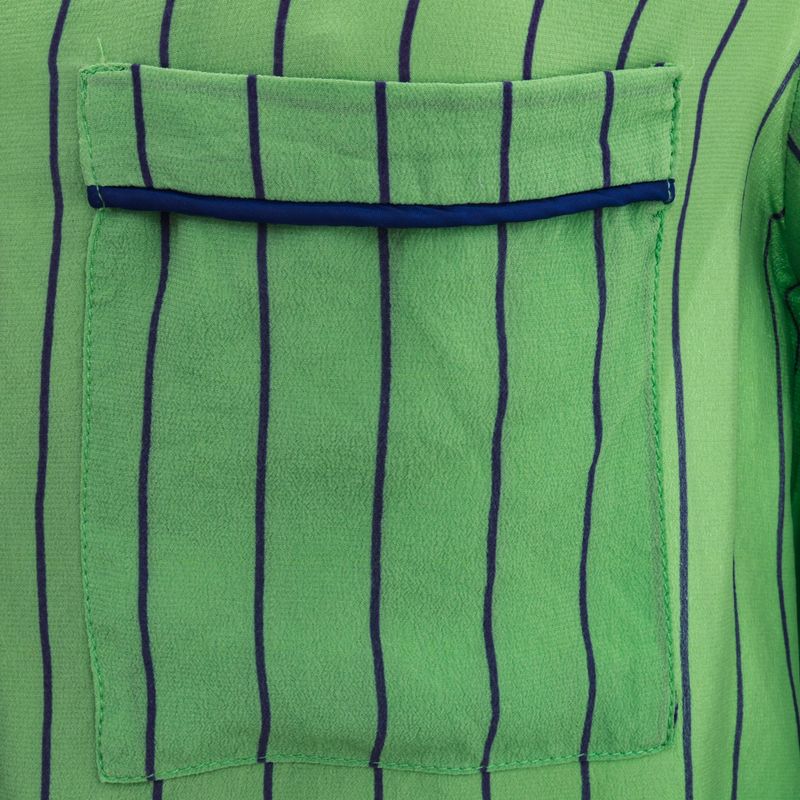FemininoRoupasCamisasCamisa Mixed Seda Verde Listras Azuis