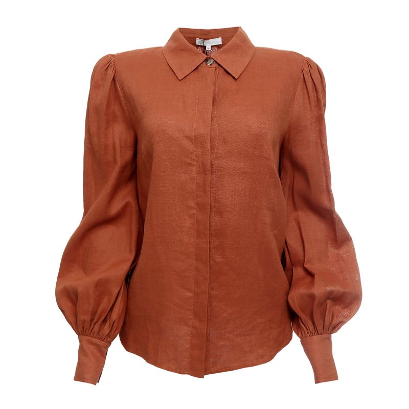 FemininoRoupasCamisasCamisa NK Anturio Linho Laranja