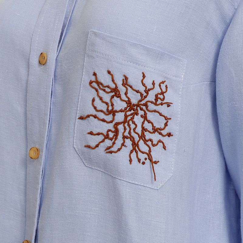 FemininoRoupasCamisasCamisa Paula Raia Bordado Azul
