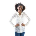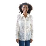 Camisa da marca Prada, tamanho 42 Brasil. Confeccionado em renda creme, mangas longas e fecho por botões. A peça se encontra em ótimo estado, com levíssimas marcas de uso.