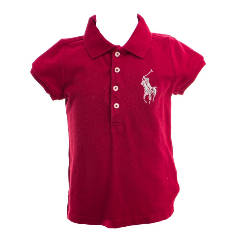 Camiseta da marca Polo Ralph Lauren Infantil. Confeccionado em algodão vermelho, bordado frontal e fecho por botões. A peça se encontra em bom estado, com marcas de uso..
