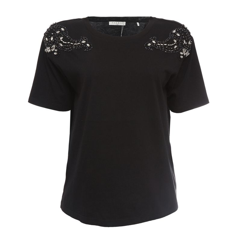 FemininoRoupasCamisas e BlusasCamiseta Sandro Bordada Preta