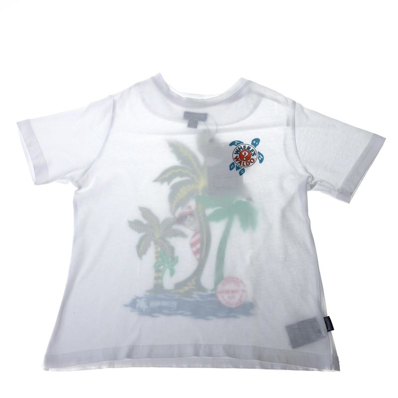 Camiseta Vilebrequin Infantil. Confeccionada em algodão branco, com estampa frontal e traseira de "Where's Waldo?" e mangas curtas. A peça se encontra em excelente estado, muito bem conservada.