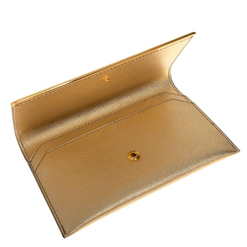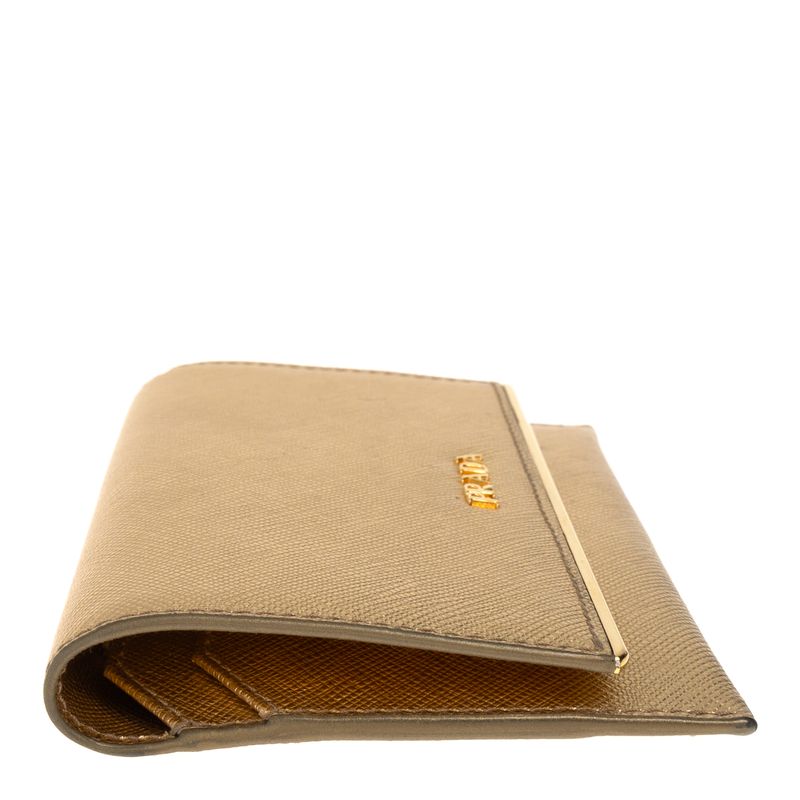 Carteira Prada e Porta Cartão Saffiano Dourado