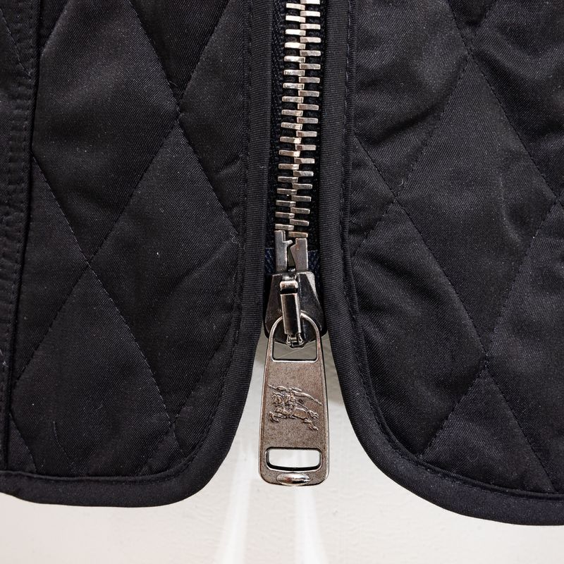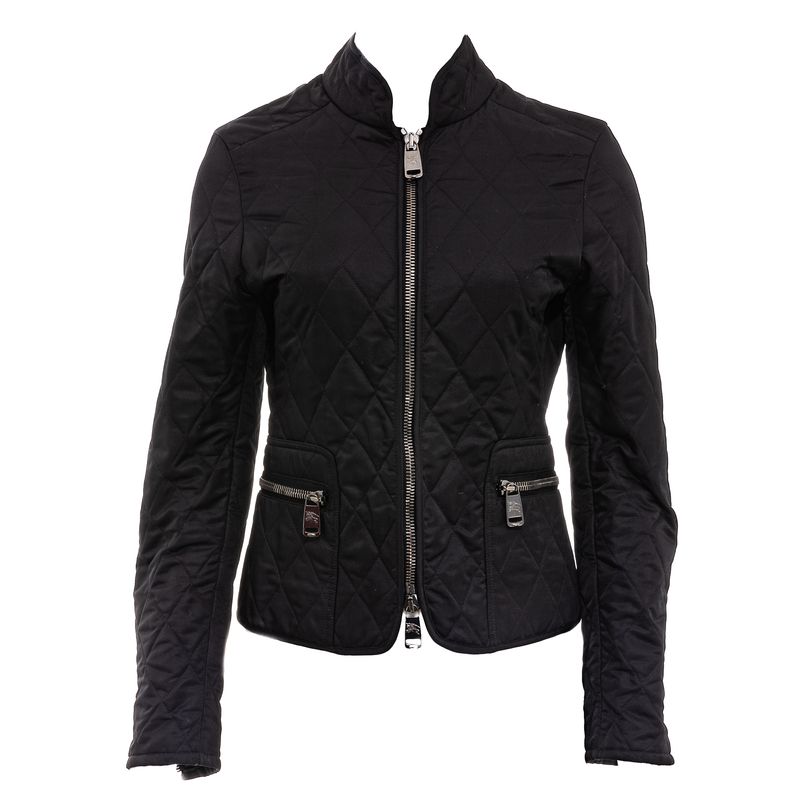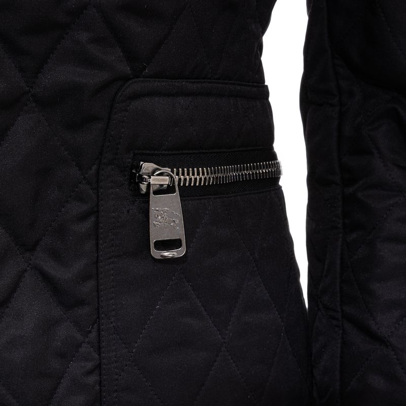 Casaco da marca Burberry. Confeccionado em poliéster na cor preta. Modelo com fecho de zíper, detalhe de costura que confere acabamento matelassê, bolsos com fecho de zíper e forro interno na estampa xadrez da marca em tons de cinza com brilho. A peça se encontra em ótimo estado, com levíssimas marcas de uso.