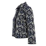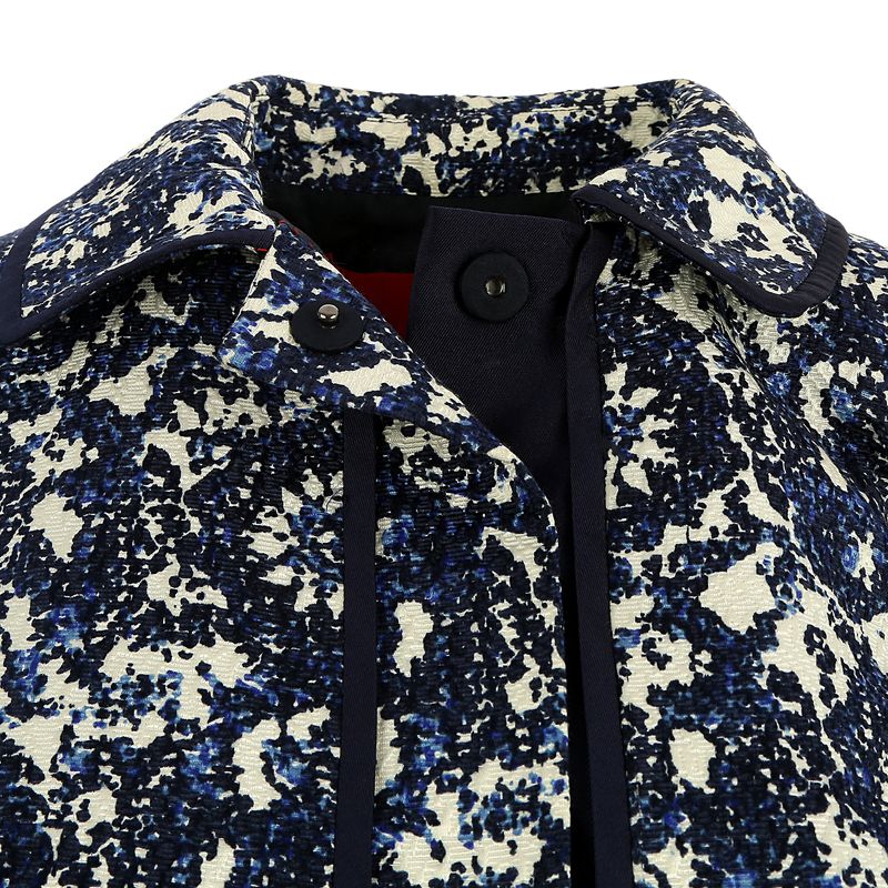 Casaqueto da marca Carolina Herrera. Confeccionado em algodão e seda estampado na cor azul e branco. Possui mangas médias e fecho por botões de pressão. A peça se encontra em ótimo estado, com levíssimas marcas de uso.