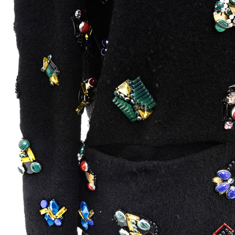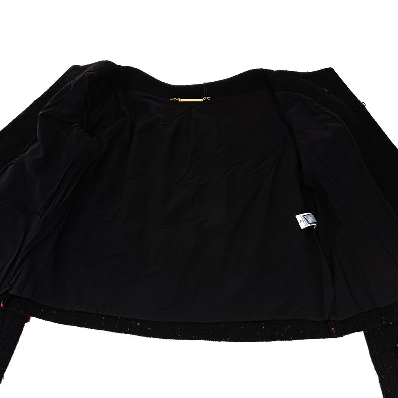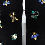Casaqueto da marca Diane Von Furstenberg. Confeccionado em lã na cor preta com aplicações coloridas. Modelo com corte reto, fecho de ganchos, com bolsos frontais. A peça se encontra em ótimo estado, com levíssimas marcas de uso.