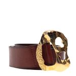 Cinto Cris Barros Couro Marrom e Fivela Dourada