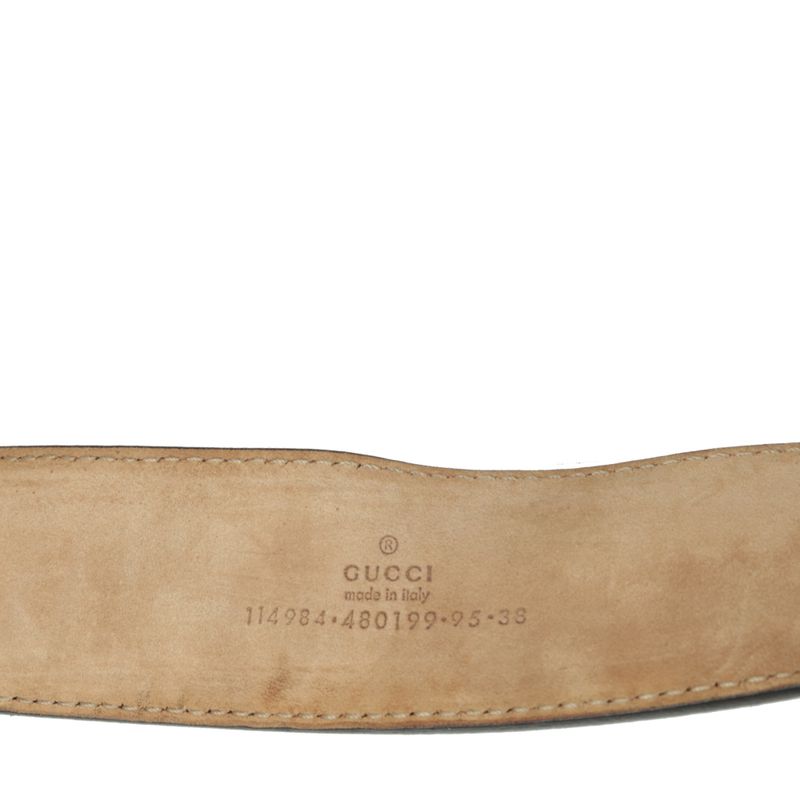 Cinto da marca Gucci, tamanho 95, confeccionado em couro Guccissima laranja com fivela em metal negro. Encontra-se em excelente estado de conservação, pouquissimo usado mas com arranhões na fivela.