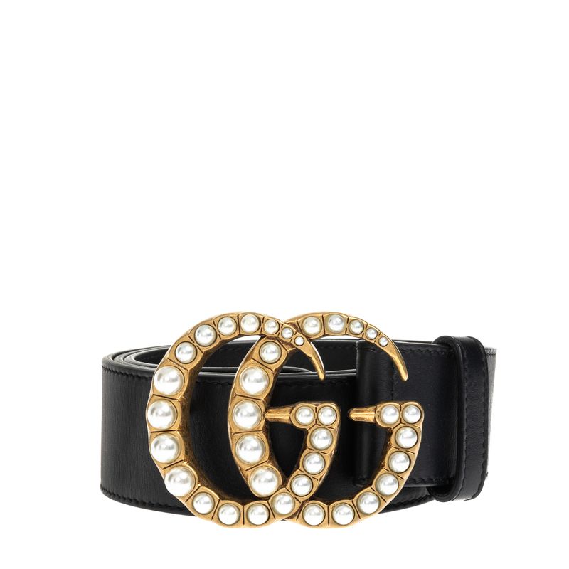 FemininoAcessórios de LuxoCintosCinto Gucci GG com Esferas Peroladas Couro Preto