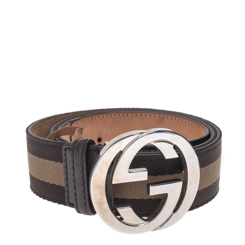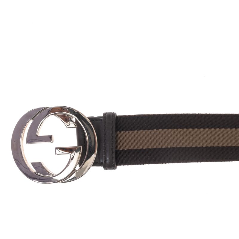 Cinto Gucci GG Interlocking Web Bege e Marrom
