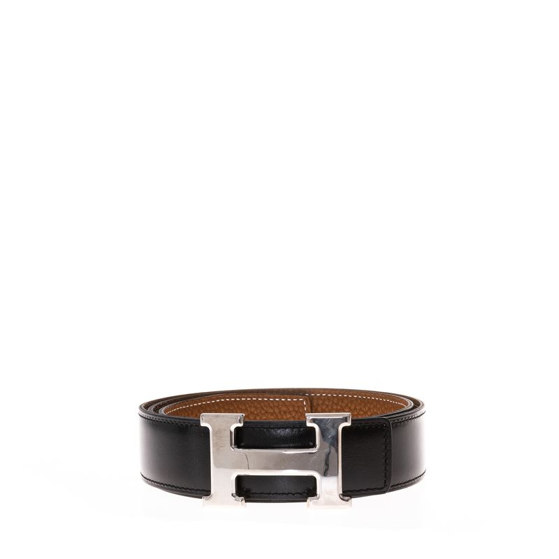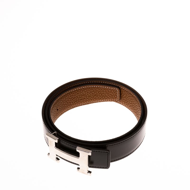 Cinto Hermés Dupla Face Couro 32mm Preto e Caramelo