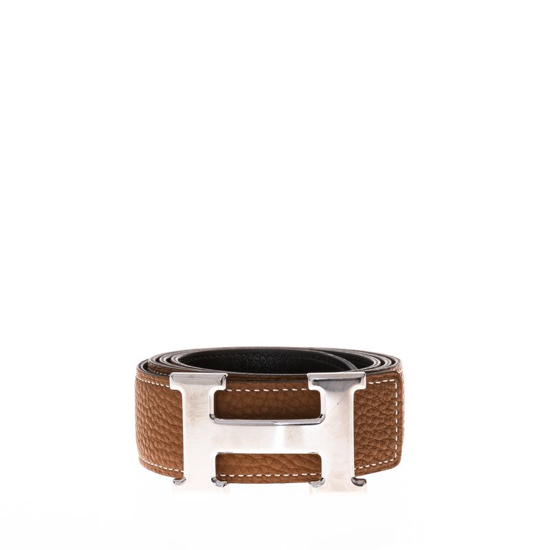 Cinto da marca Hermés Dupla Face, tamanho 85/3. Confeccionado em couro caramelo e preto, com fivela H em platina. Possui 3 furos para ajuste de tamanho. A peça se encontra em excelente estado, muito bem conservada. Porém levíssimos riscos na fivela.