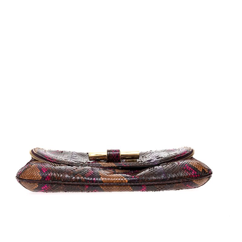 Clutch Jimmy Choo Couro Exótico Vinho e Marrom