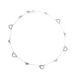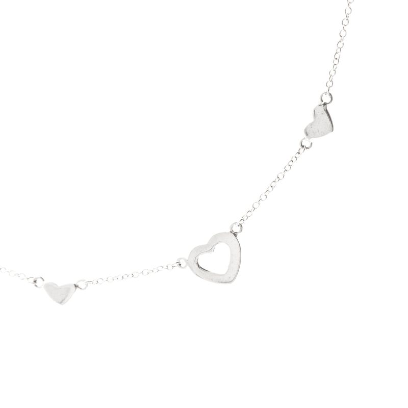 Colar Corações, tamanho 40 cm comprimentos. Confeccionado em prata, com variós coracões. A peça se encontra em estado satisfatório, com leves riscos nos corações.