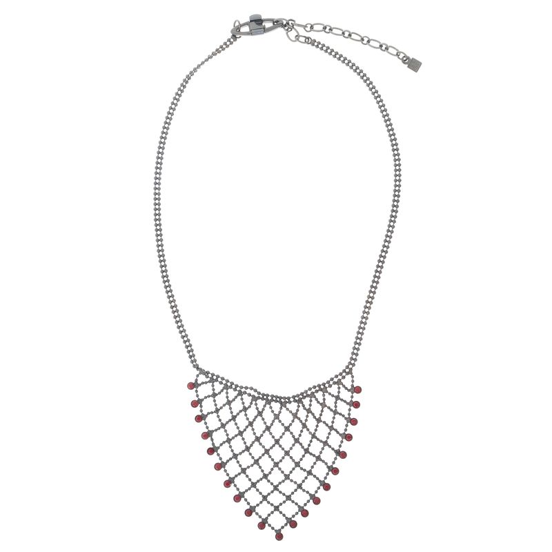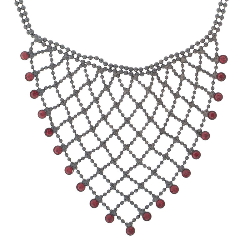 • Modelo: Colar Givenchy com cristais vermelhos e ferragem da cor grafite