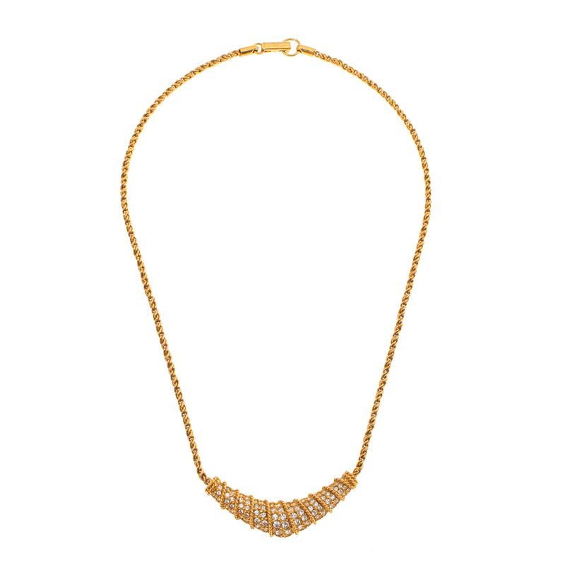 Colar Swarovski. Confeccionado em metal dourado, com detalhe de torção e cristais frontais. A peça se encontra em excelente estado, muito bem conservada.