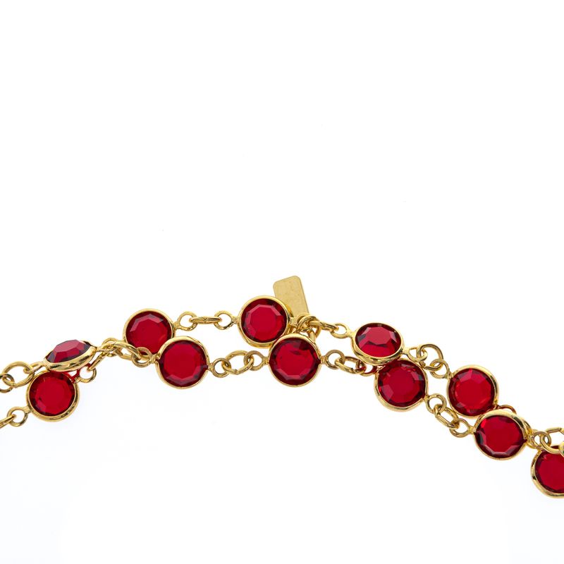 Colar da marca Swarovski, 45cm de comprimento. Confeccionado em metal dourado com cristais em formato redondo na cor vermelha. Não possui fecho. A peça se encontra em excelente estado, muito bem conservada.