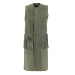 Colete TalieNK Longo Couro Cinza com Franjas