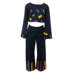 Conjunto Alix Bordados Coloridos Preto