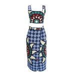 Conjunto Allmost Vintage Casaco, Top e Saia Estampado Azul