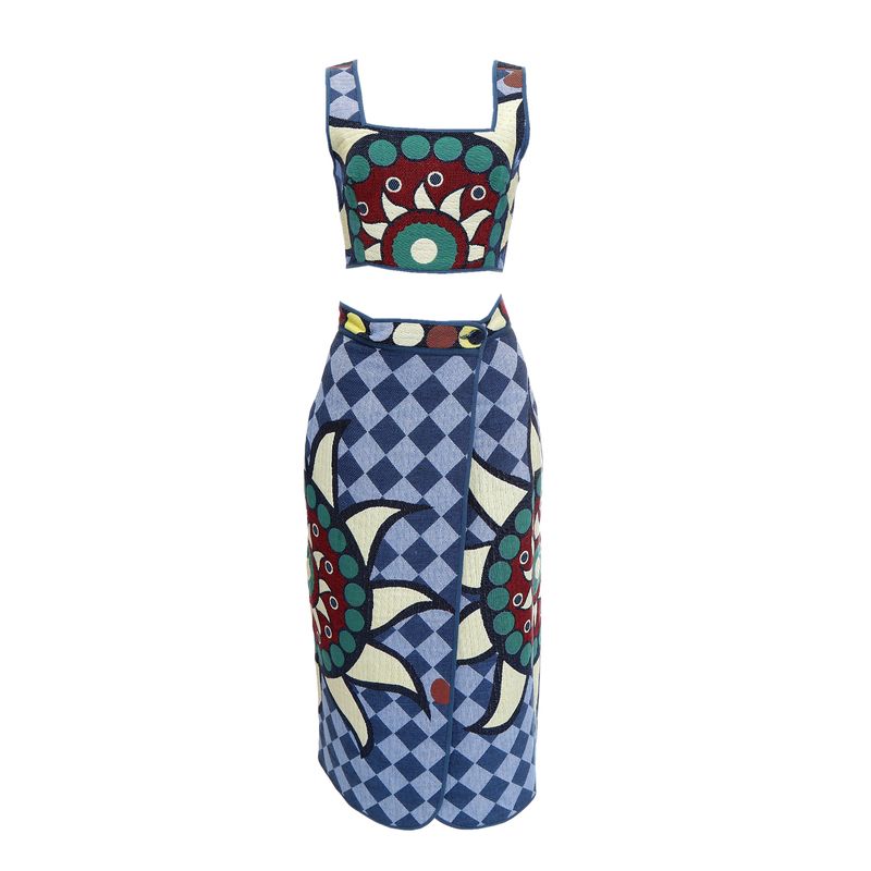 FemininoRoupasConjuntosConjunto Allmost Vintage Casaco, Top e Saia Estampado Azul