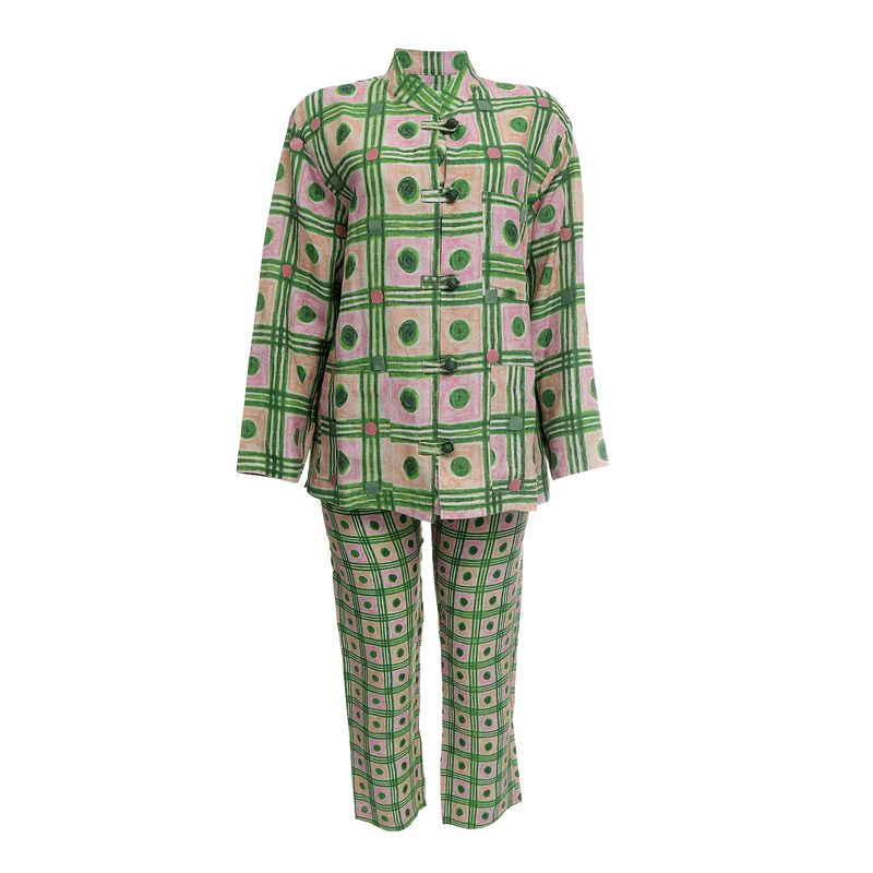 Conjunto BDLN Camisa e Calça Estampada Rosa e Verde